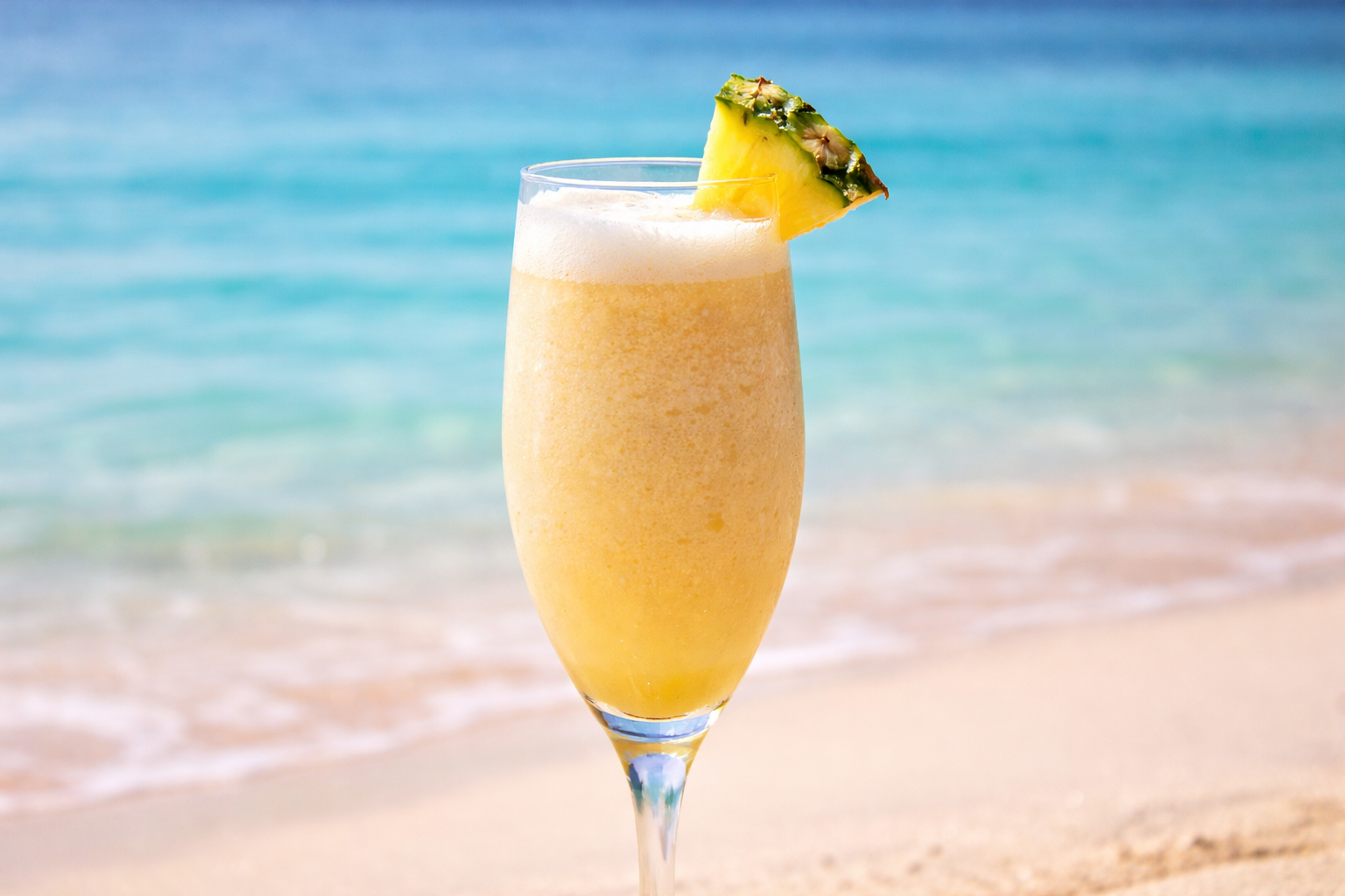 Garnish with a pineapple wedge.