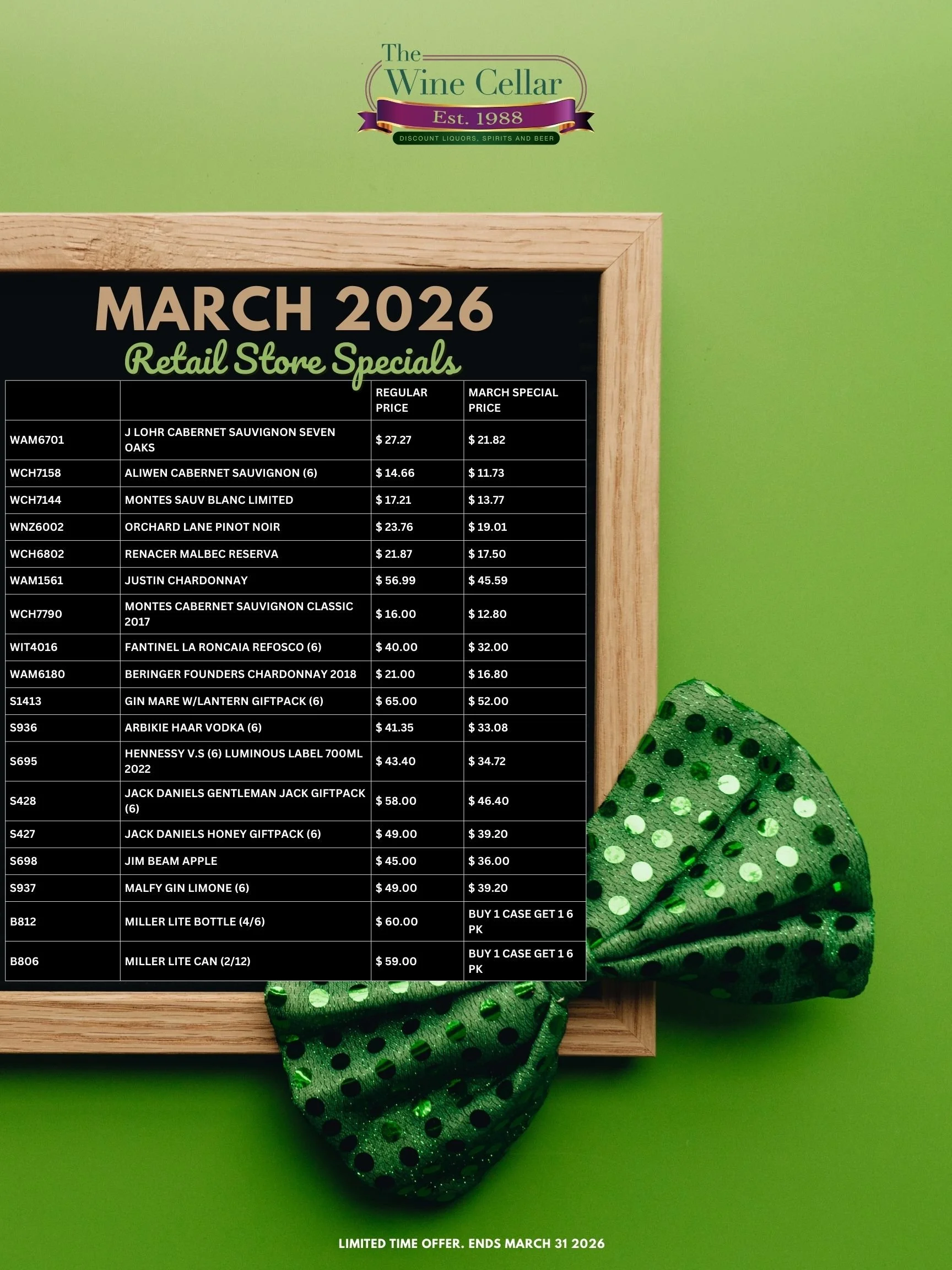 Whether you're planning a backyard BBQ, hosting friends for dinner, or simply upgrading your weeknight pour, our March Retail Specials make it easy to drink well for less.